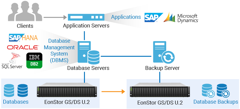 Infortrend se integran con los sistemas de gestión de bases de datos como Oracle DB y Microsoft SQL, con un rendimiento excepcional, estabilidad en el acceso a los datos en aplicaciones críticas, y funciones para garantizar la integridad de los datos.