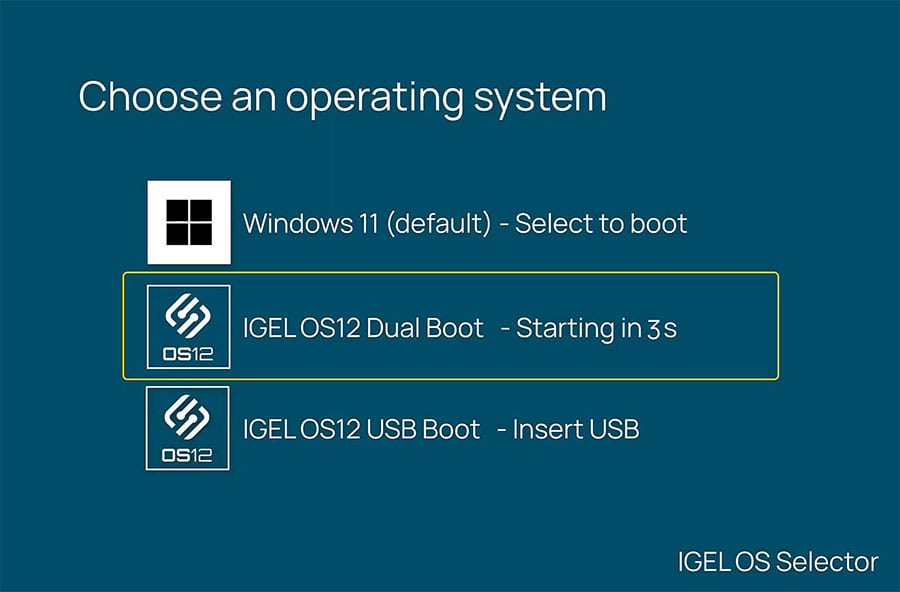 Garantiza la continuidad de las operaciones en los endpoints ante cualquier ataque de ransomware. IGEL DualBoot™ permite el arranque limpio con IGEL OS en un dispositivo Windows infectado, minimizando el RTO.