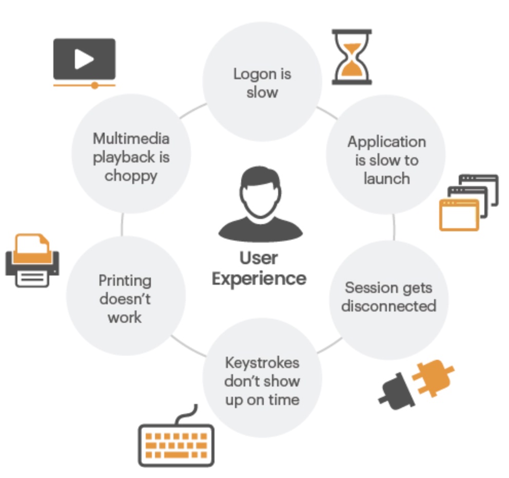 En el puesto de trabajo coexisten múltiples tecnologías que deben funcionar de forma conjunta para que las sesiones, aplicaciones y escritorios virtuales rindan bien, y cualquier fallo en cualquiera de estos niveles puede traducirse en problemas de usuario. Inicios de sesión lentos, desconexiones de sesión, bloqueos de pantalla, etc., son algunas de las quejas comunes de los usuarios.