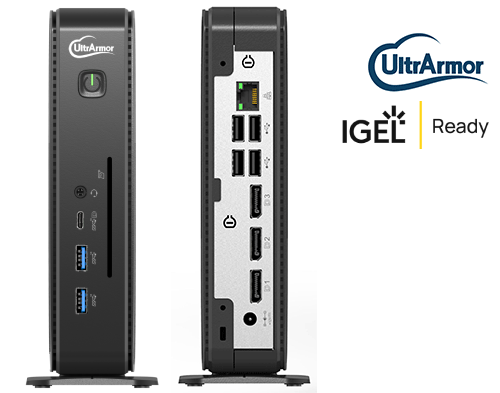 Los Thin client UltrArmor UA3 ofrecen un rendimiento alto para entornos multimedia exigentes. Integra procesador AMD Ryzen de 2.57GHz hasta 3.5GHz, 4GB de memoria RAM y 16GB de memoria Flash.